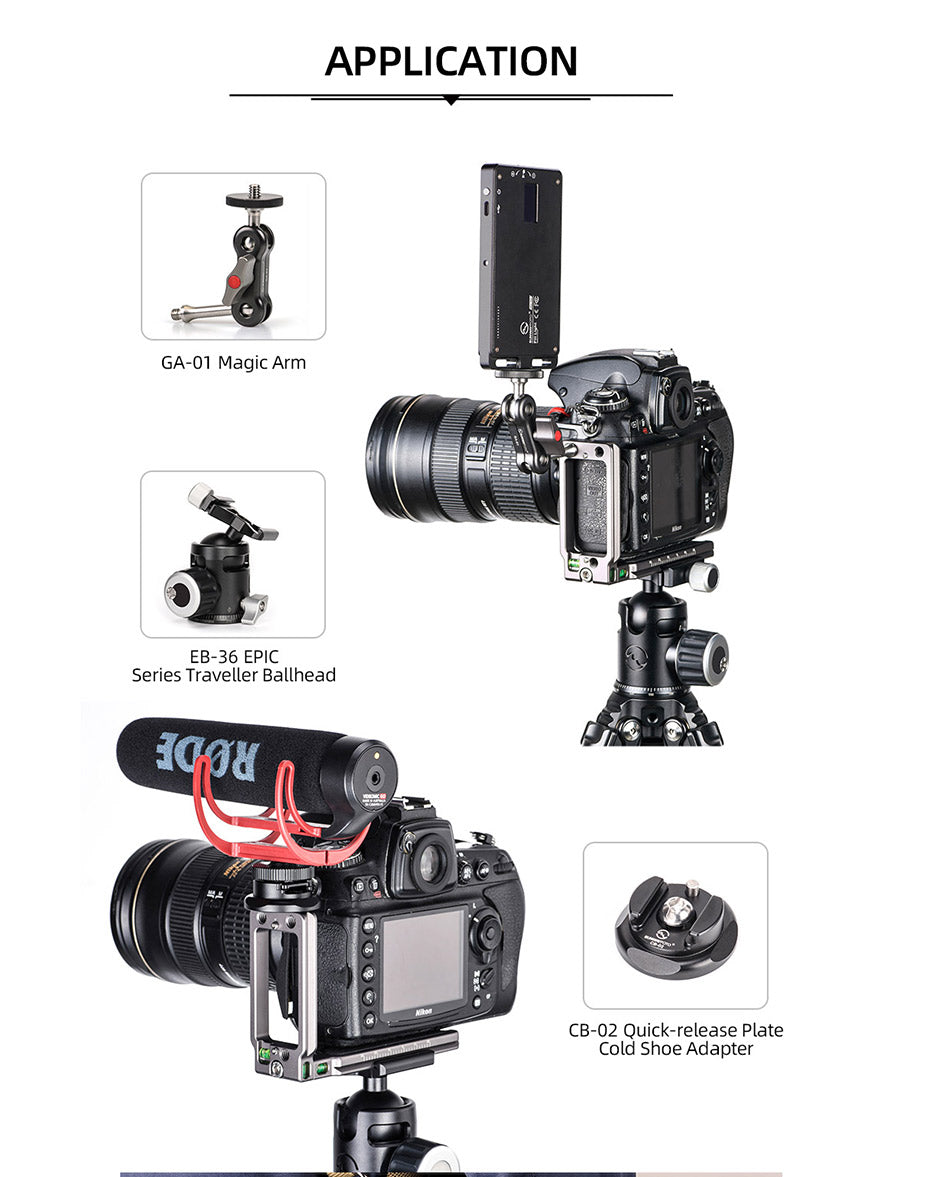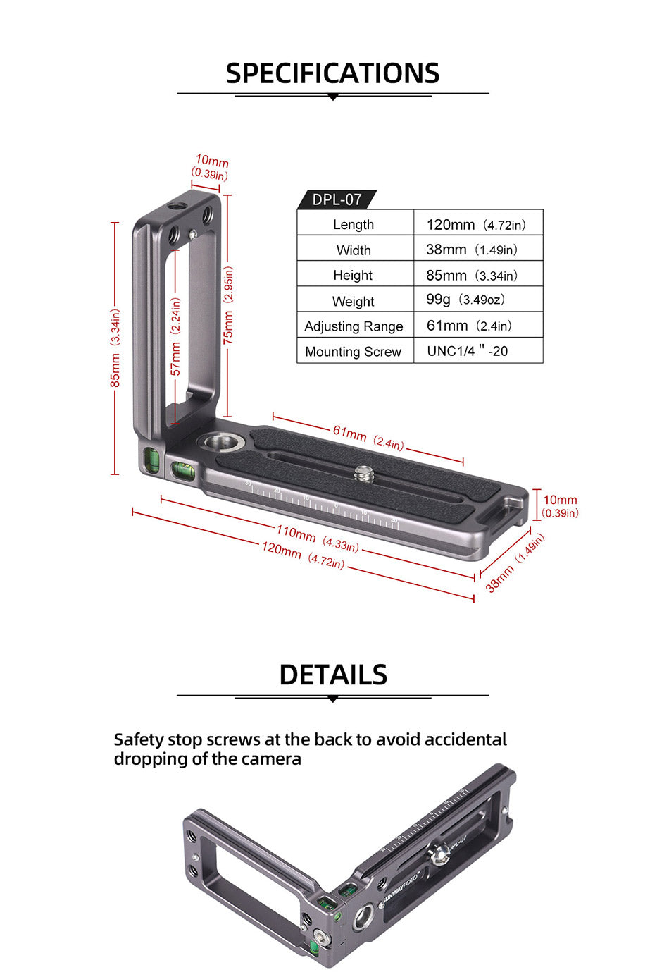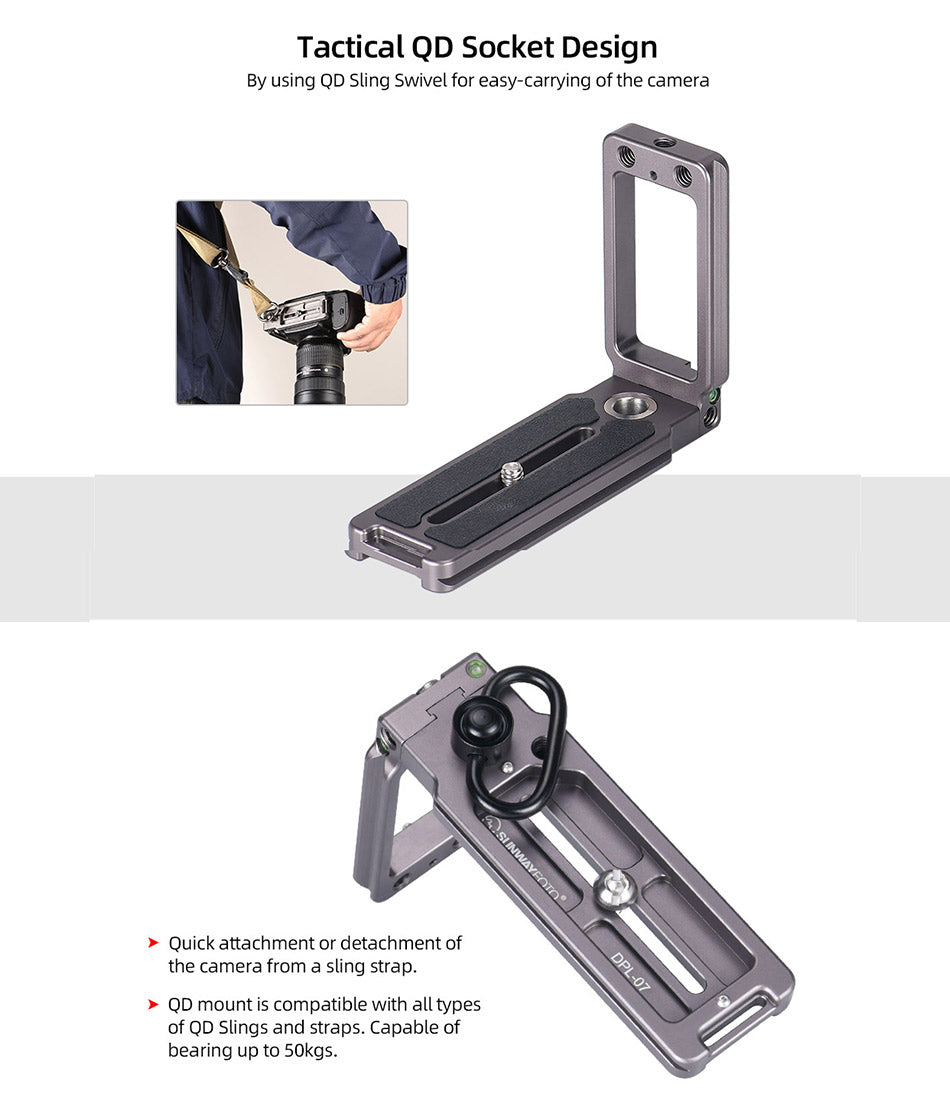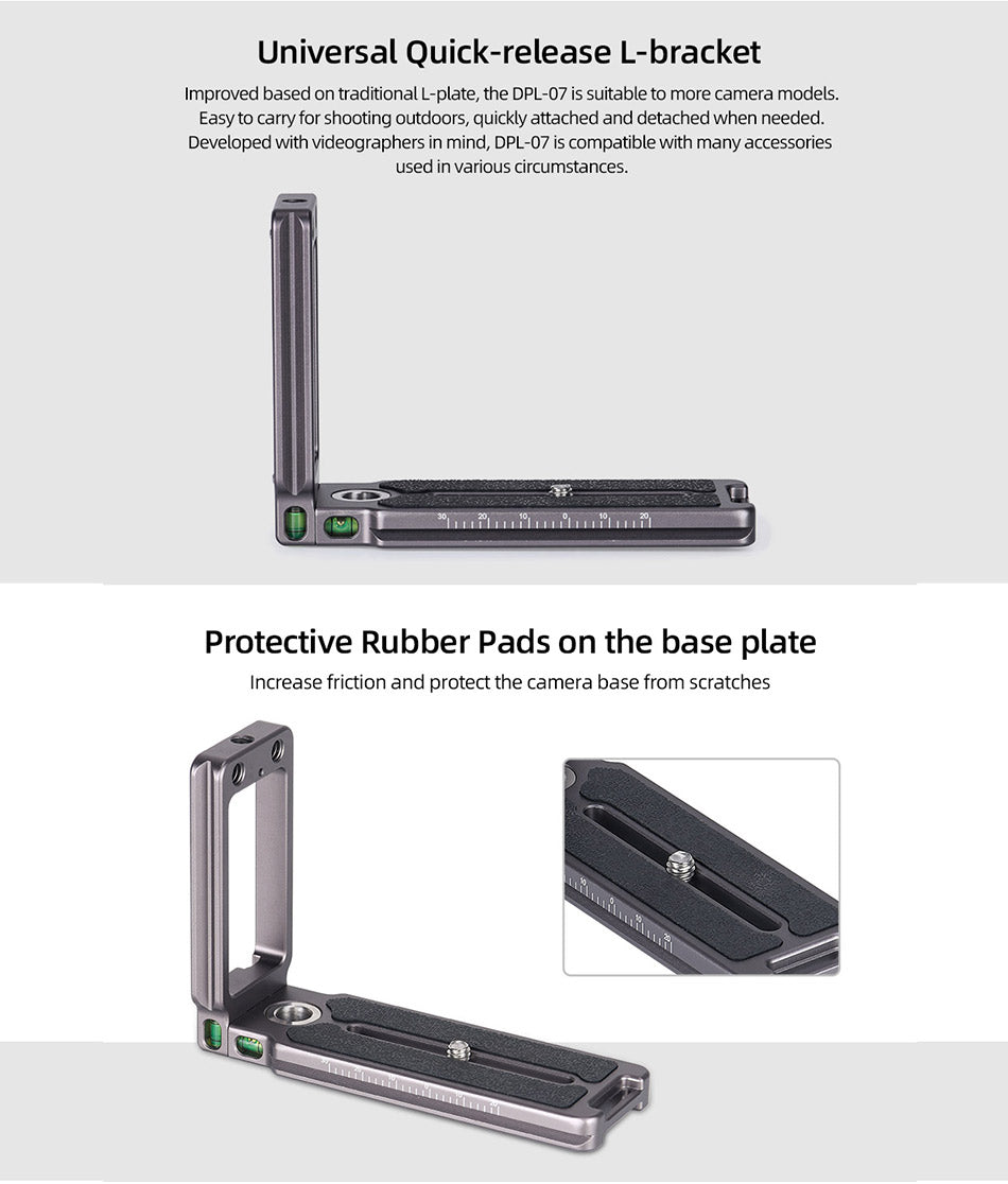 Improved based on traditional L-plate, the DPL-07 is suitable with more camera models. Easy to carry for outdoor shooting, quick attach and detach when needed. Along with development of video shooting,