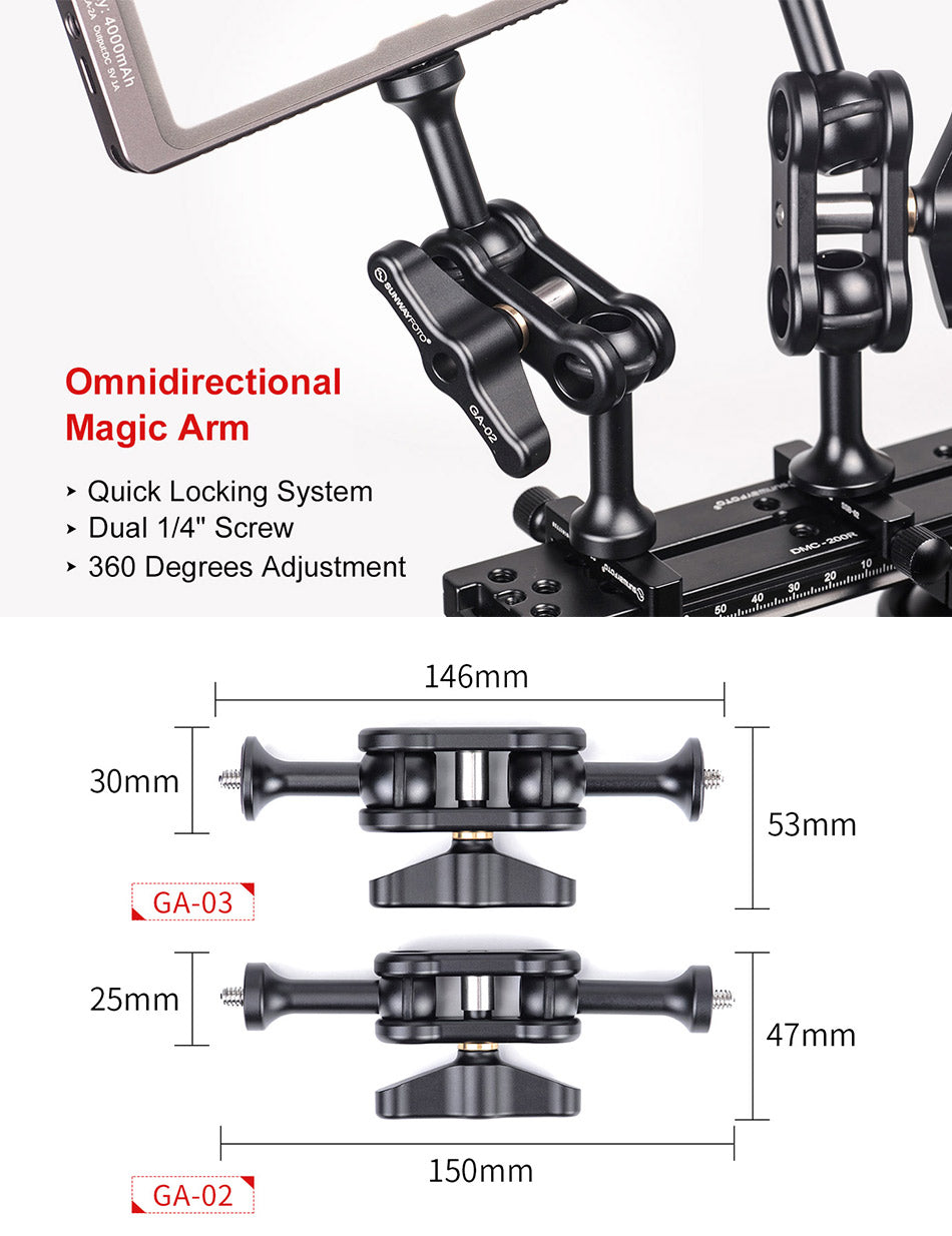 GA-02/03 Magic Arm Mount 1/4" Thread Screw for LCD Monitor/LED Lights/Super Clamp