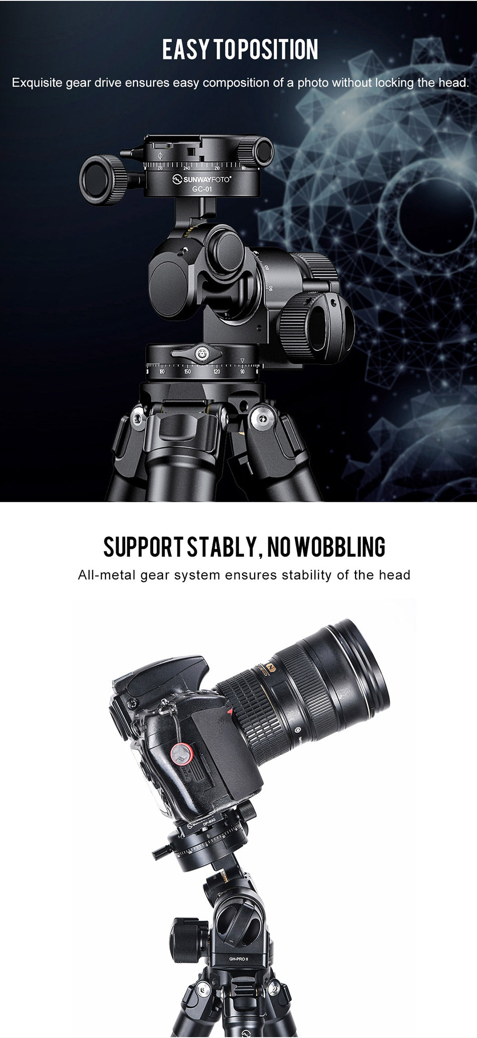 ✪Easy to position. Exquisite gear drive ensures easy composition of a photo without locking the head.