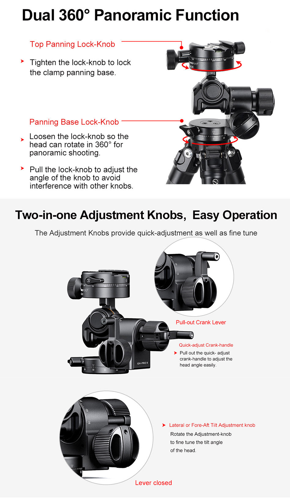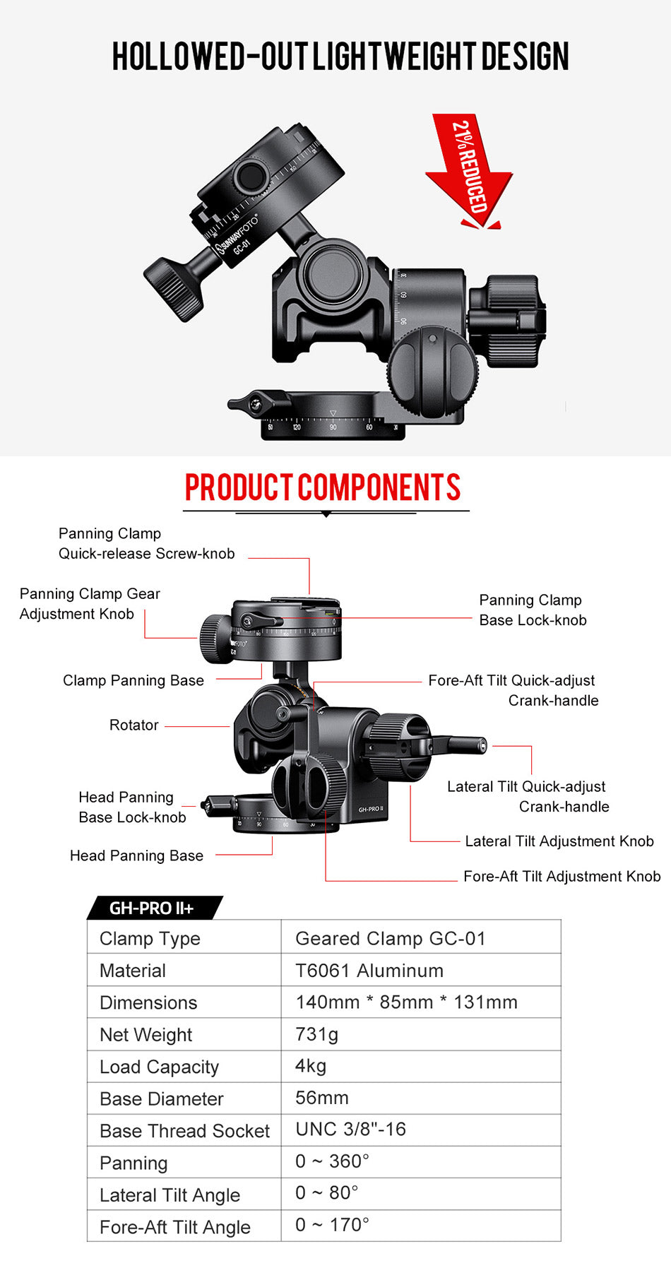 ✪Based on the original GH-PRO geared head, the GH-PRO II+ features more compact structure and lighter weight, very easy to carry with.