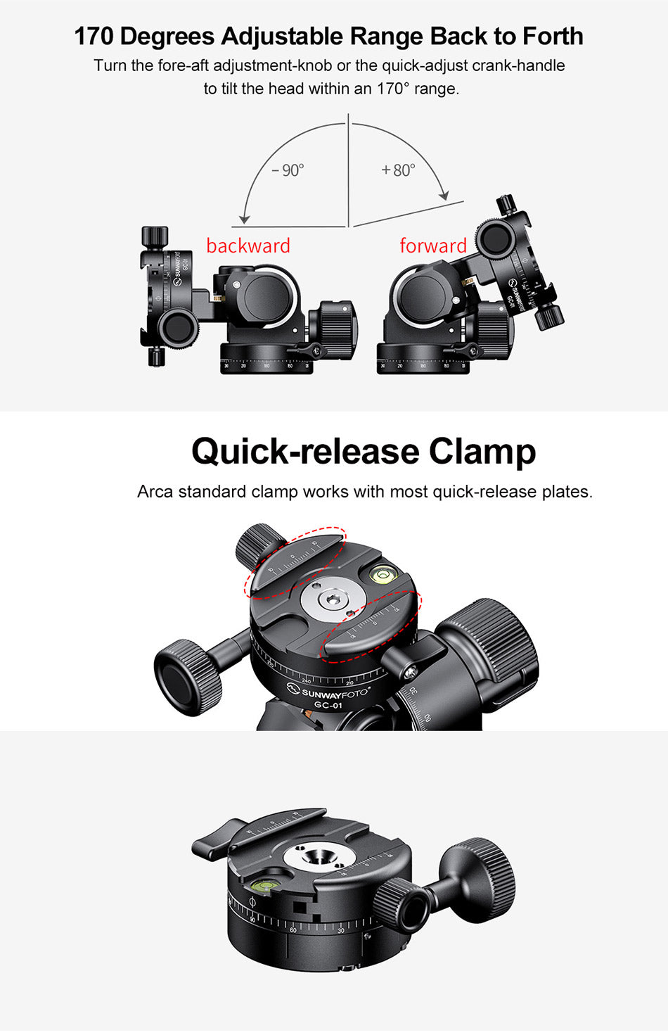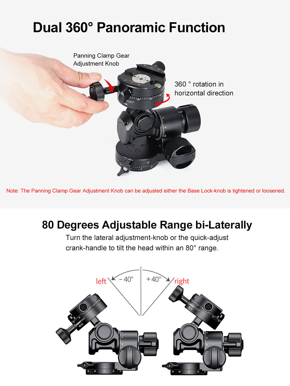 ✪Compared with other ballheads, geared heads have advantages in easy composition of a photo due to its exquisite gear drive,especially suitable for landscape and architectural photography;