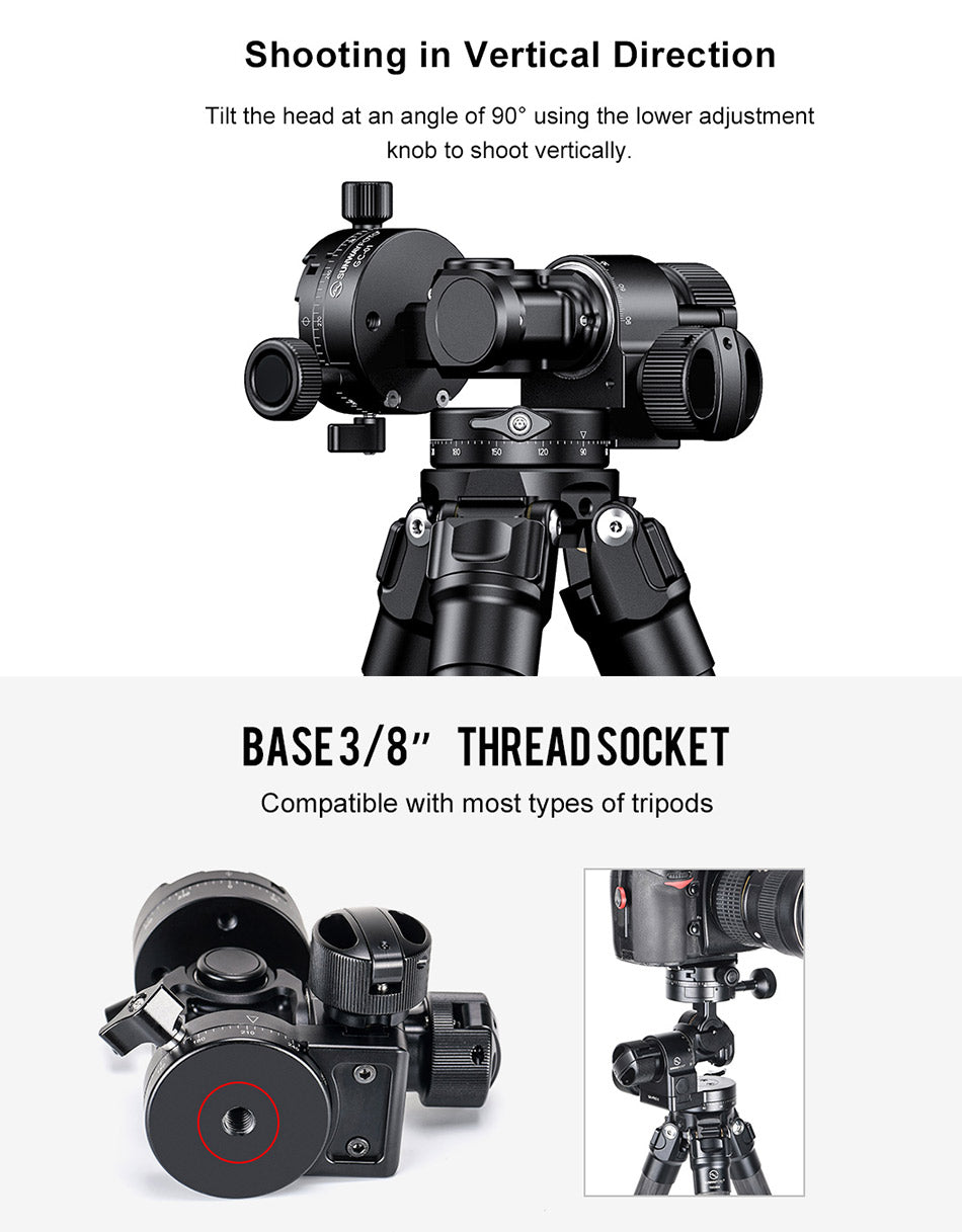 ✪Base Horizontal Panning, Fore-Aft Tilt, Lateral Tilt and Top Panning independent adjustment, without interference, make photo composition easier.