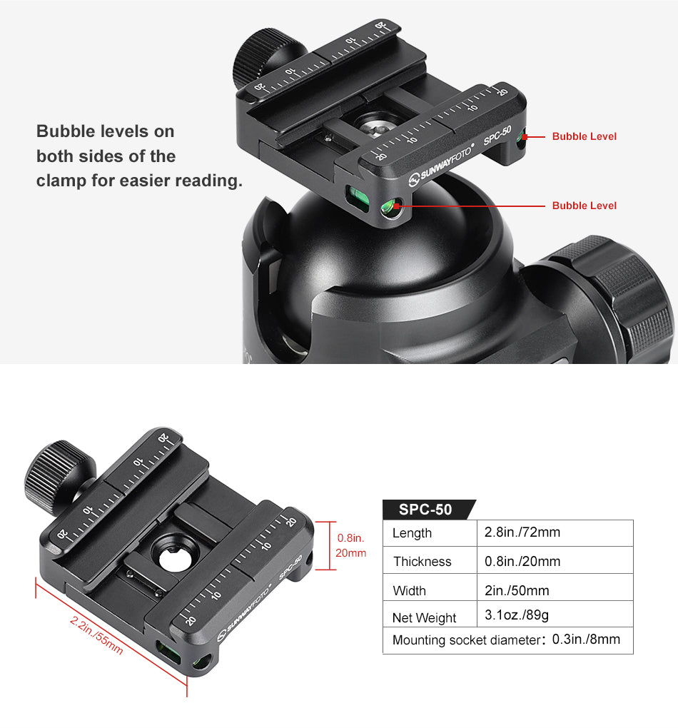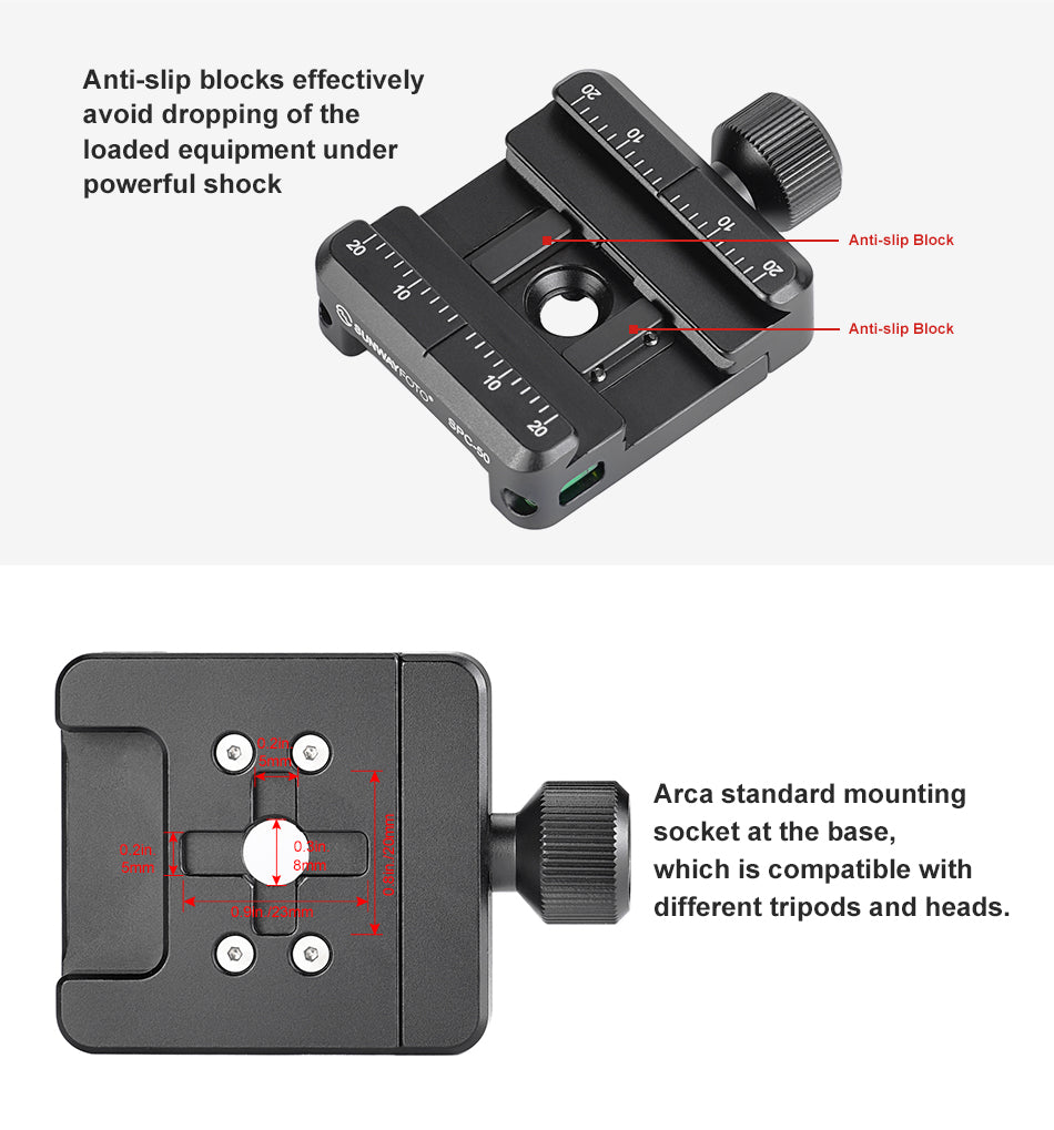✪Arca mounting socket at the base of the clamp so it works with different tripods and ballheads.