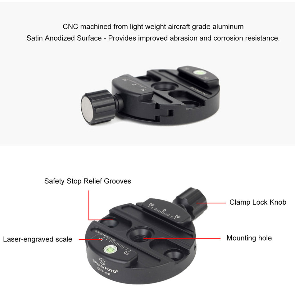 ✪Safe and steady: The overall height of DYH-68 is only 39mm, with low gravity center, very steady and safe. Compatible with equipment of high gravity center, such as 6x6, 6x7 medium format camera or view camera.