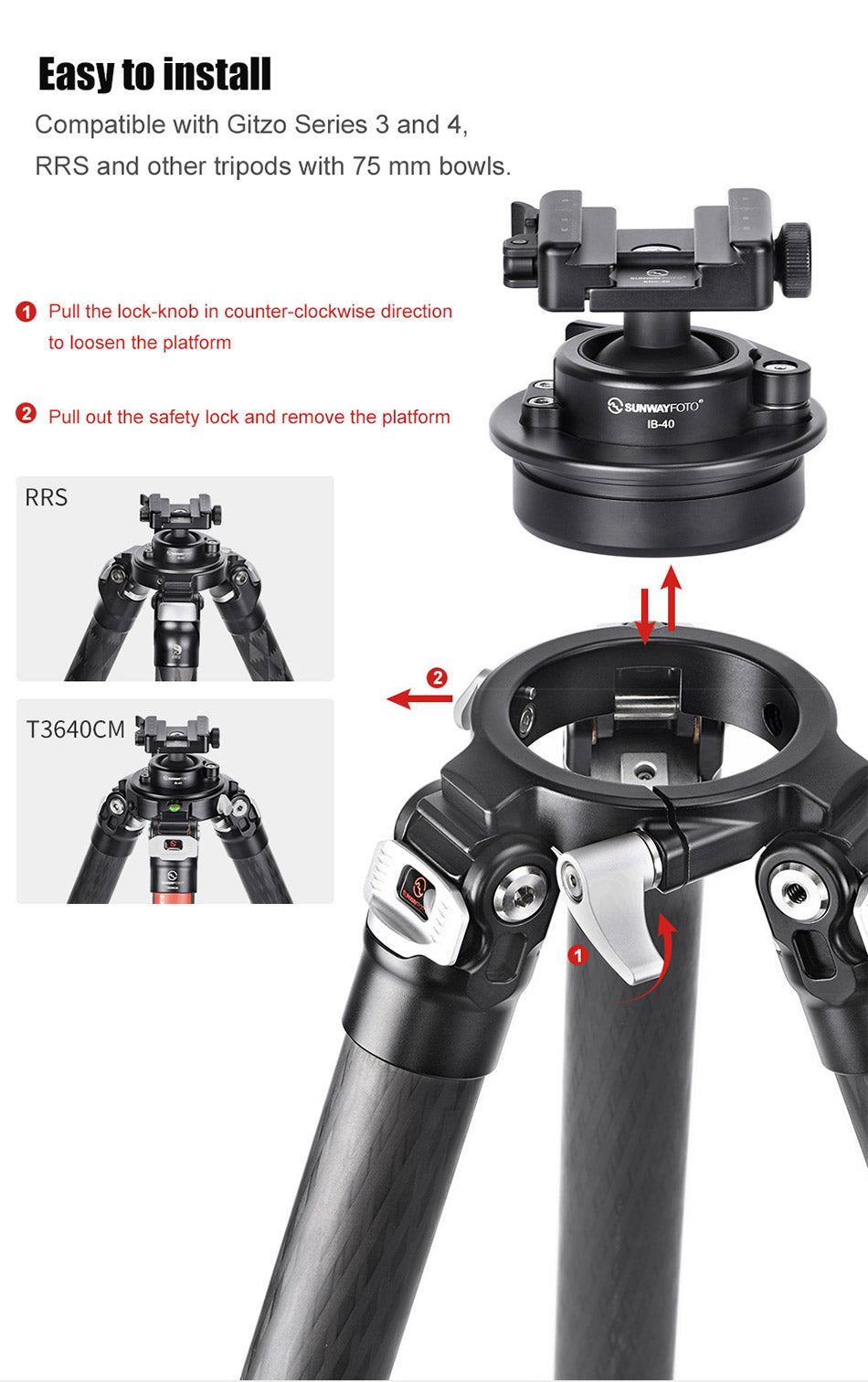 ✪Compatible with Gitzo 3, 4 Series and RRS etc. tripods using 75mm bowl adapters, very easy to install; Perfect match with Sunwayfoto T3650CM and T3640CM.Compatible with tripods of 70mm bowl diameter