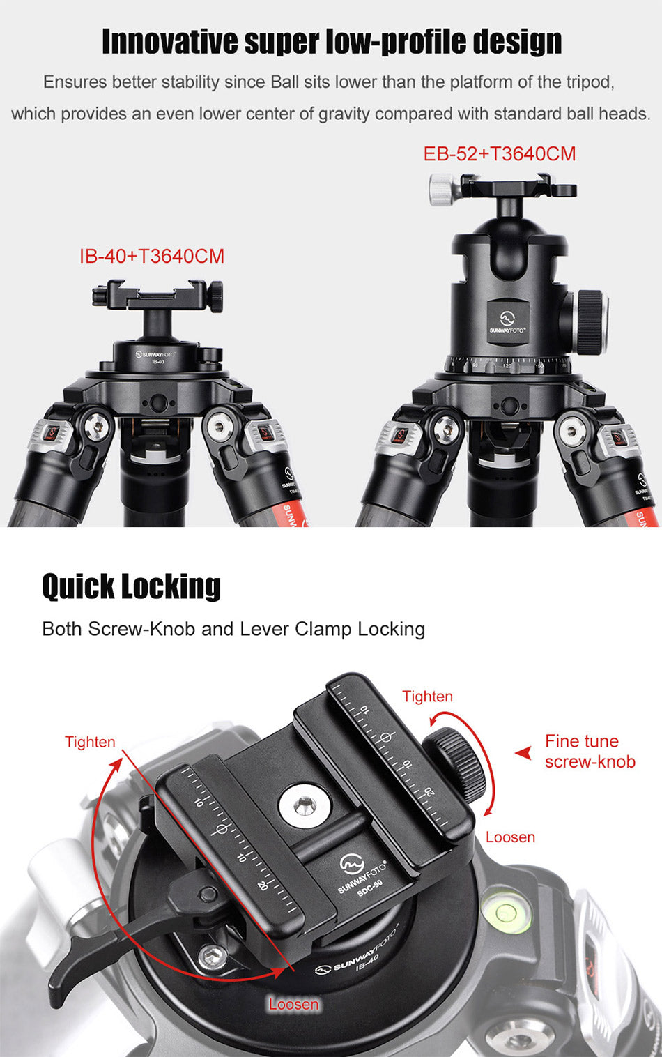 ✪Two ways of tightening by lever-release and screw-knob provide quick locking and fine tuning. Better compatibility with QR plates of different manufacturers.