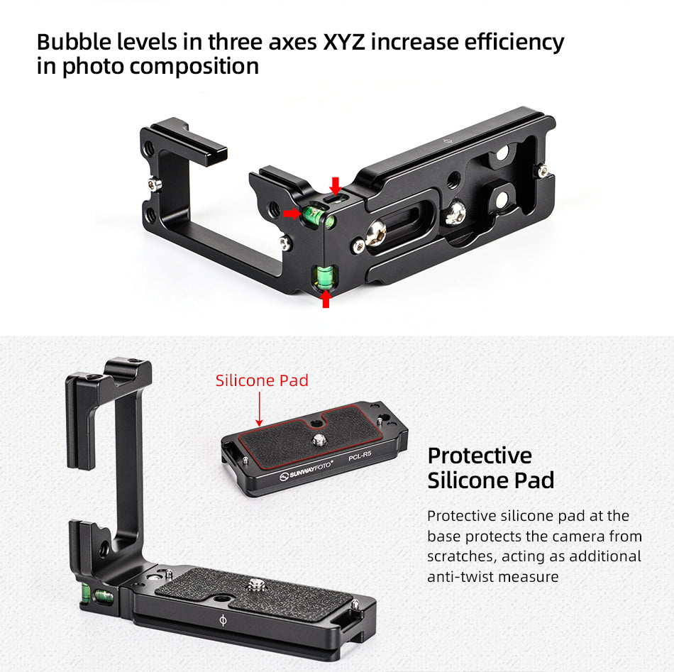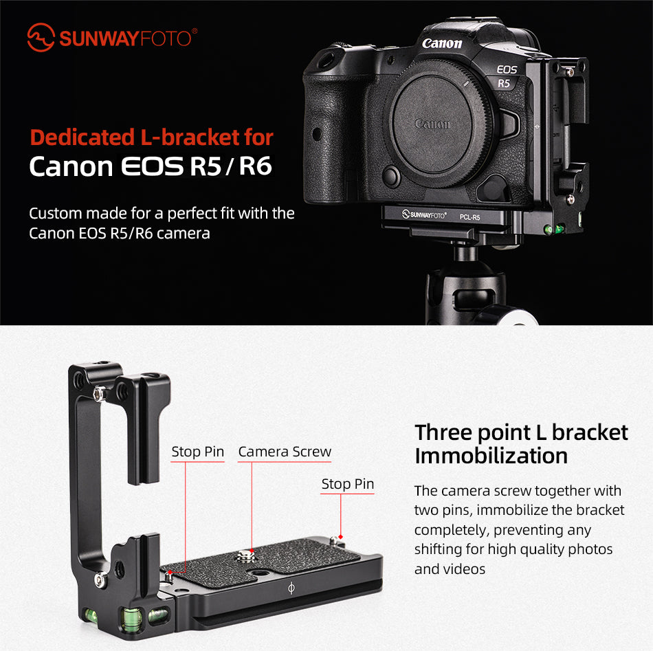 SUNWAYFOTO PCL-R5 is dedicated L-bracket for Canon EOS R5/R6.