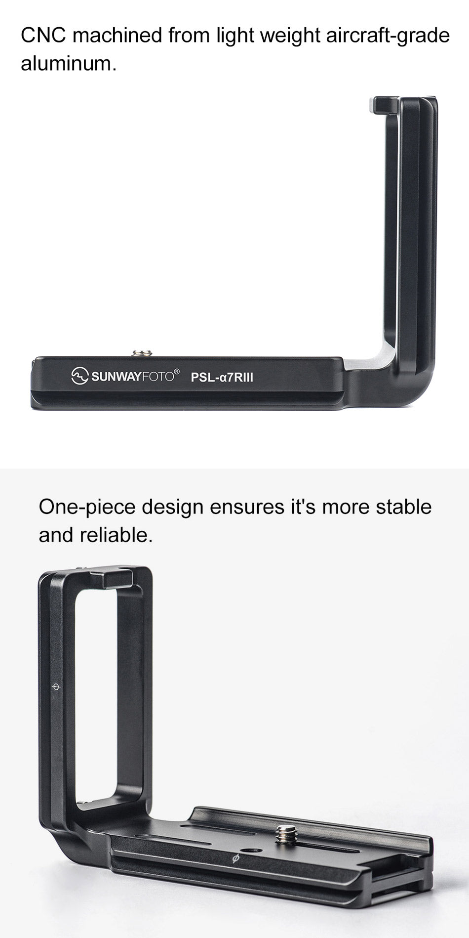 ✪Sunwayfoto PSL-α7RIII, dedicated L-bracket for Sony α7RIII / α9 camera, which is effectively shock-proof and avoids shifting when switching between vertical and horizontal shooting.