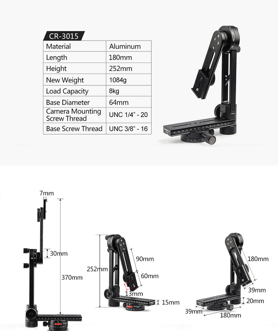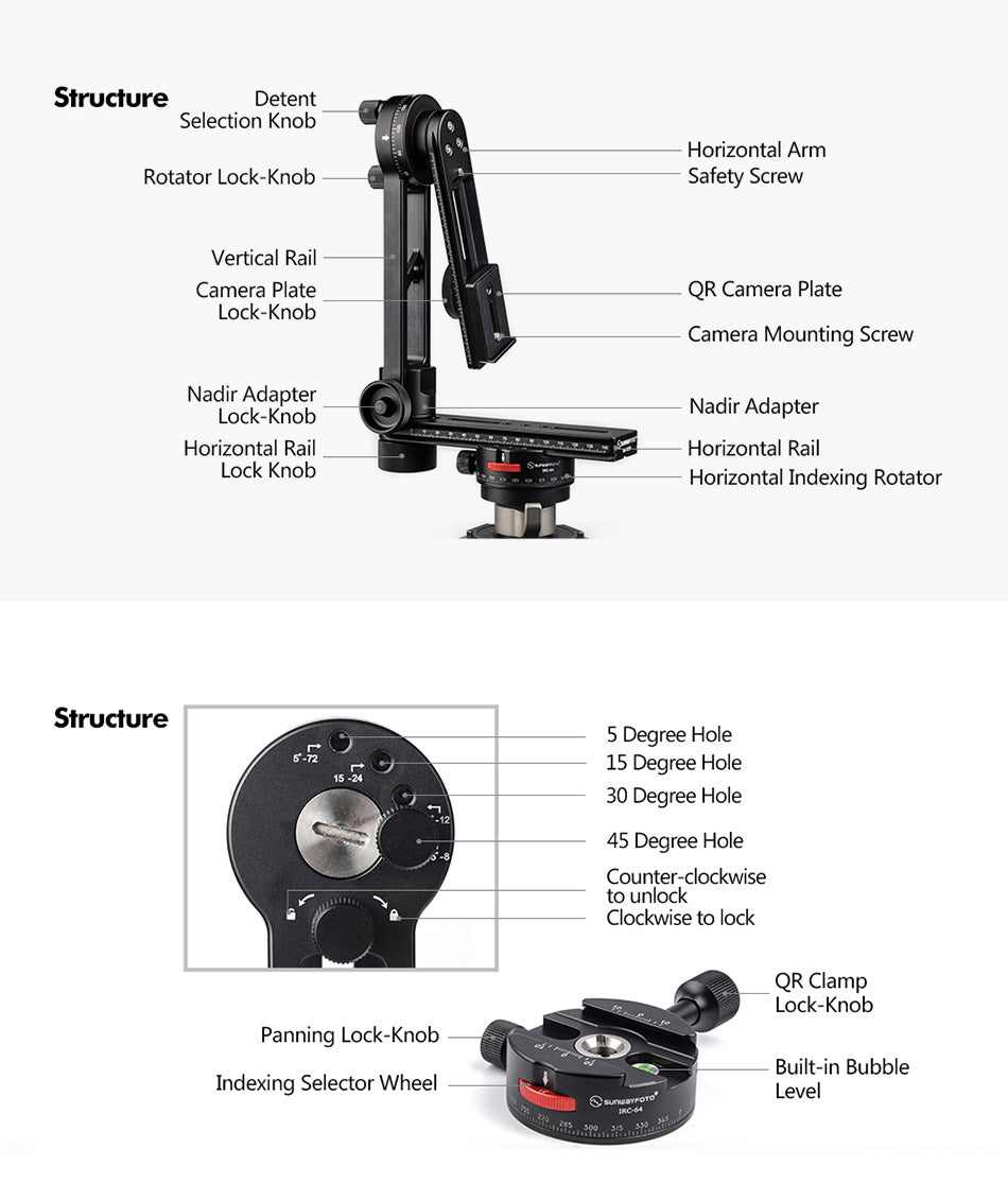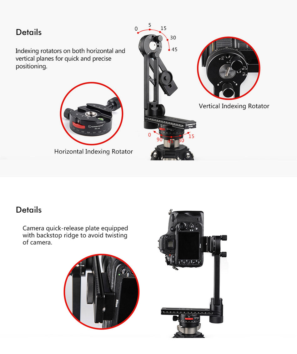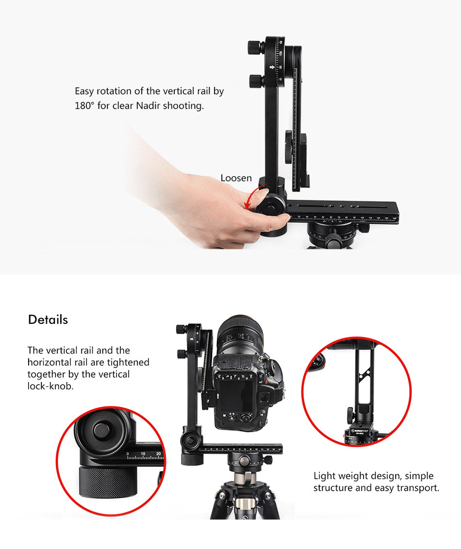 Easy rotation of the vertical rail by 180° for clear Nadir shooting