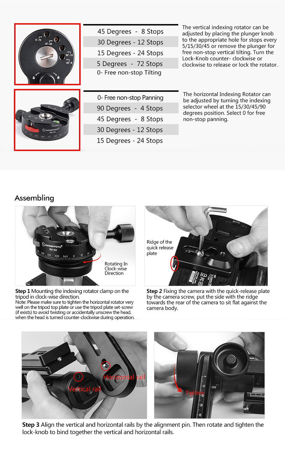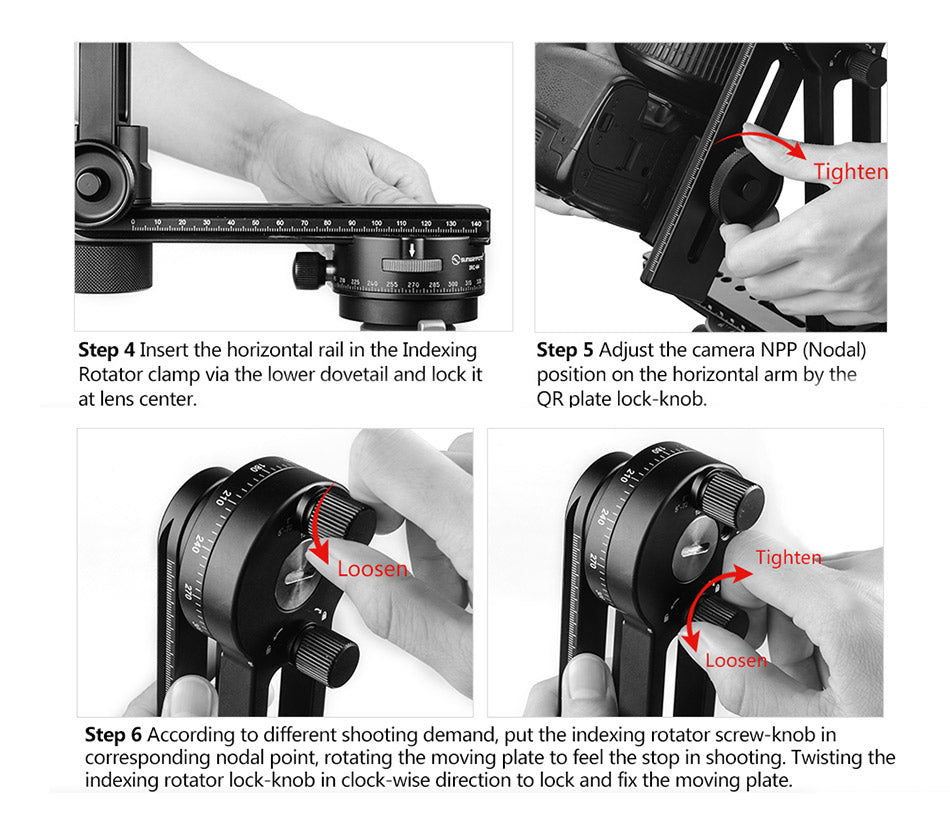 The horizontal indexing rotator clamp works in combination with the vertical indexing rotator to provide as many as 1728 photos at smallest nodal point.