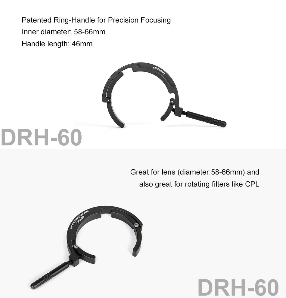 DRH-60 universal focusing handle is great for lens(diameter:58-66mm) and also great for rotating filter like CPL.