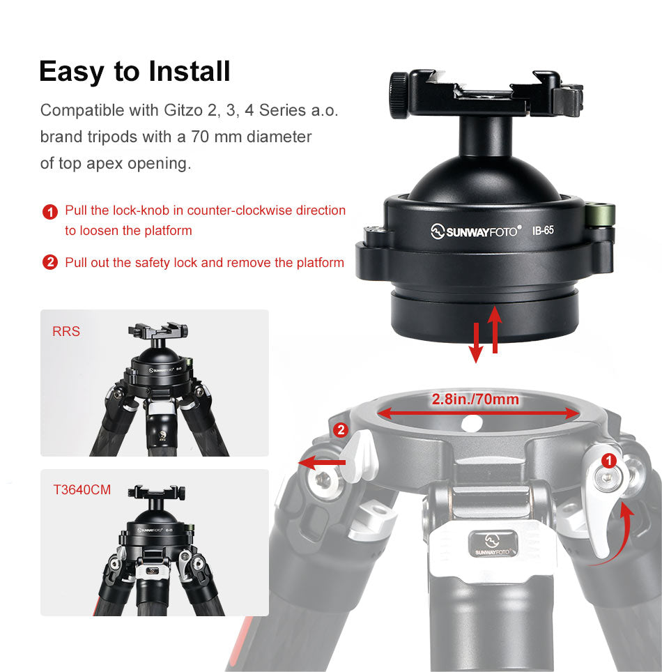 ✪Compatible with Gitzo 2, 3, 4 Series and RRS etc. tripods using 75mm bowl adapters, very easy to install; Perfect match with Sunwayfoto T3650CM and T3640CM.Compatible with tripods of 70mm bowl diameter