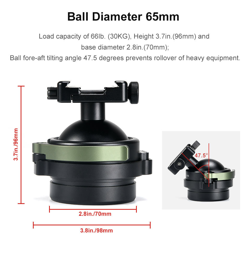 ✪Innovative super low-profile design, ball is lower than the platform of the tripod which provides an even lower gravity center compared with other ballheads hence ensures better stability when it’s loaded with ultra-long or heavy equipment;