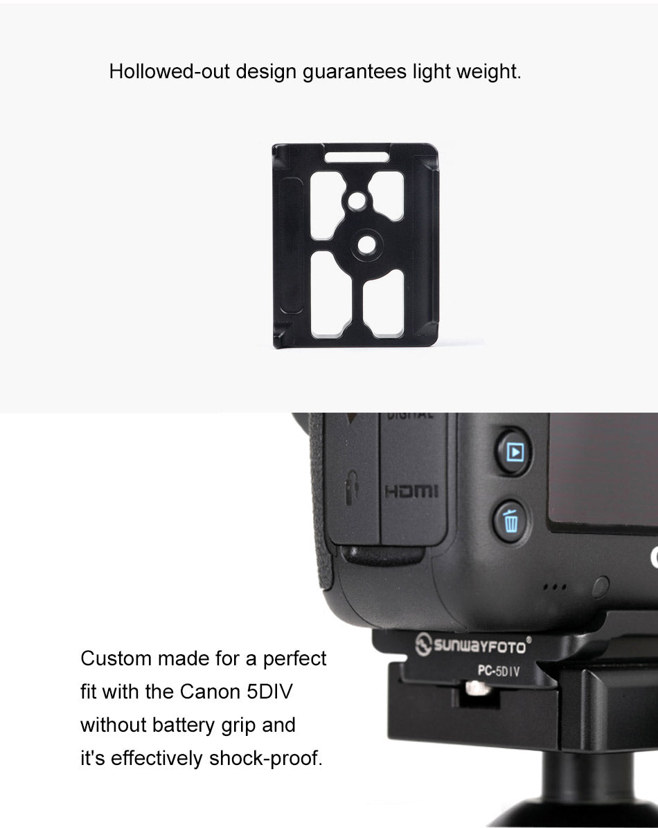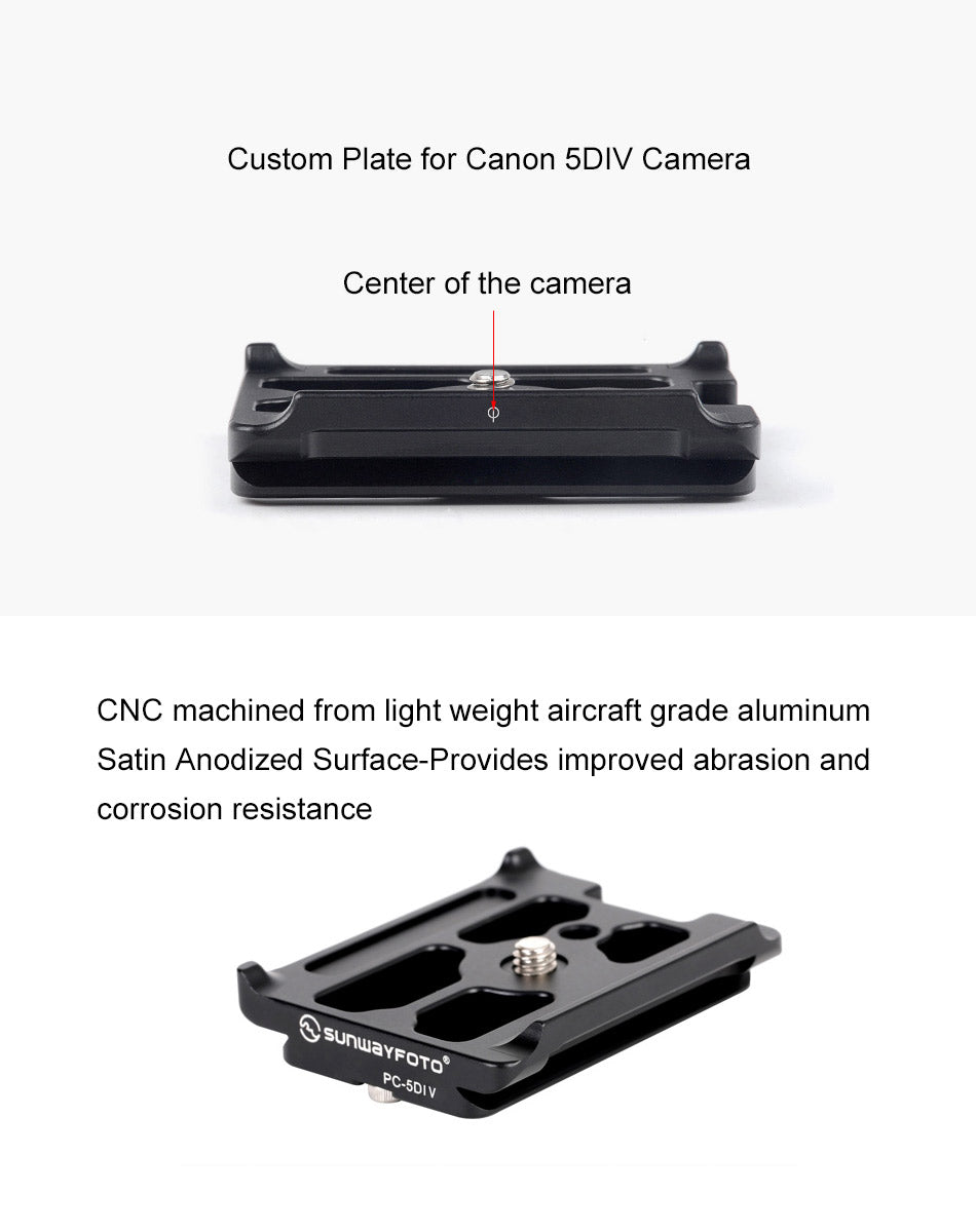 SUNWAYFOTO PC-5DIV Custom plate for Canon 5DIV body, one piece CNC cutting machined from light weight aircraft-grade aluminum, stain