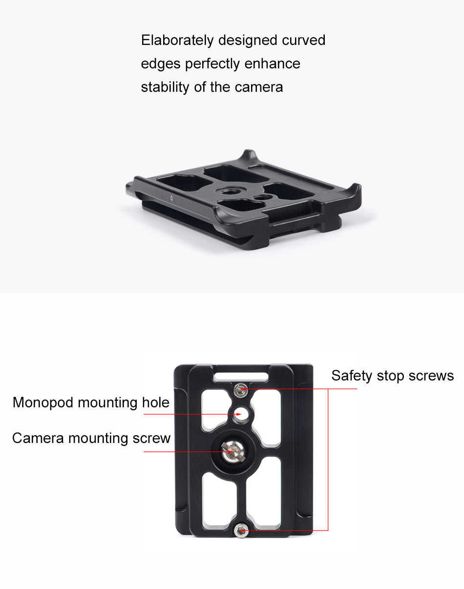 anodized surface finish for better abrasion and corrosion resistant. Arca-Swiss style.