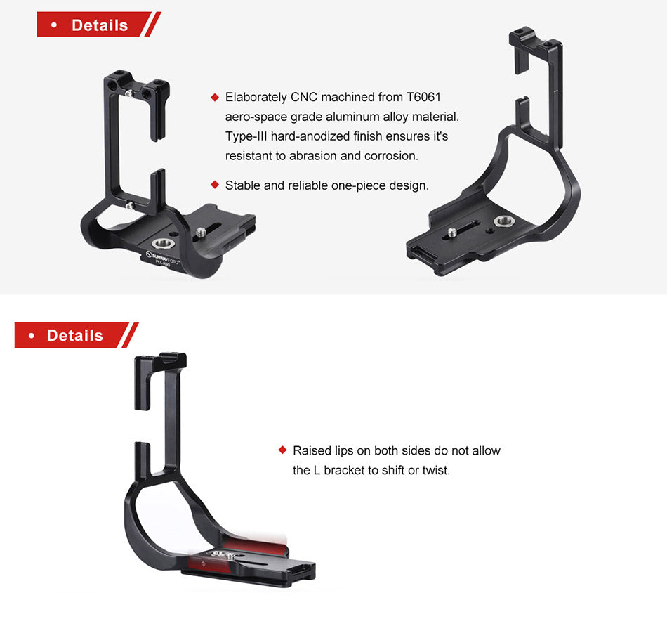 Sunwayfoto has been making dedicated L-brackets for Canon, Nikon, Sony and Fujifilm etc. camera brands.