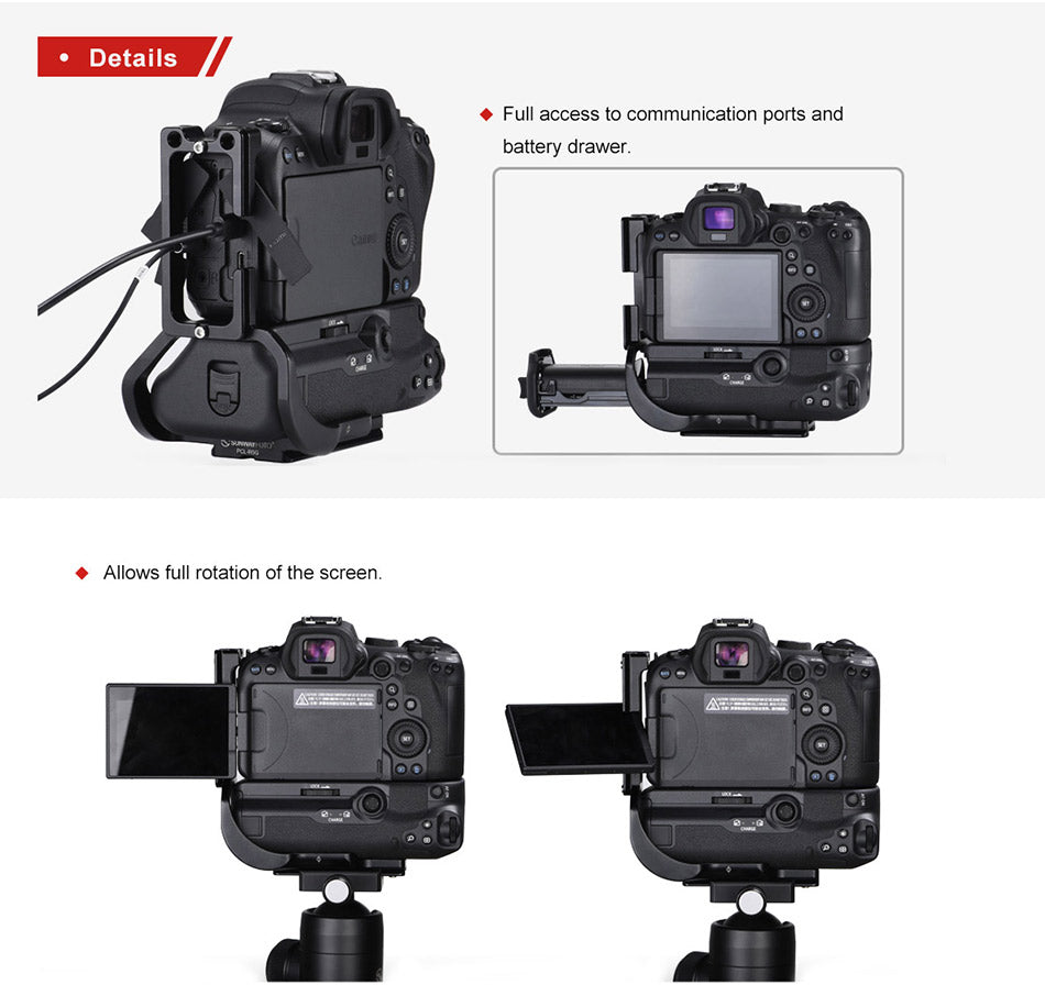 Allows full rotation of the screen. Arca-swiss standard dovetail structure, compatible with most tripod ballheads in the market.