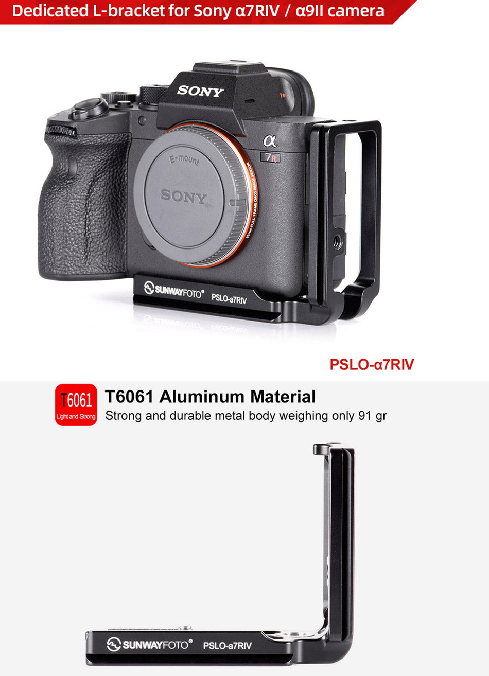 Sunwayfoto has been making dedicated L-brackets for Canon, Nikon, Sony and Fujifilm etc. camera brands, including Sony a1, a7, a7ii, a7riii, a7riv, a7rv, a6000, a6300, a6400, a6500 camera body L-brackets and a1, a7riv, a7rv camera body + battery grip vg-c4em L-brackets.