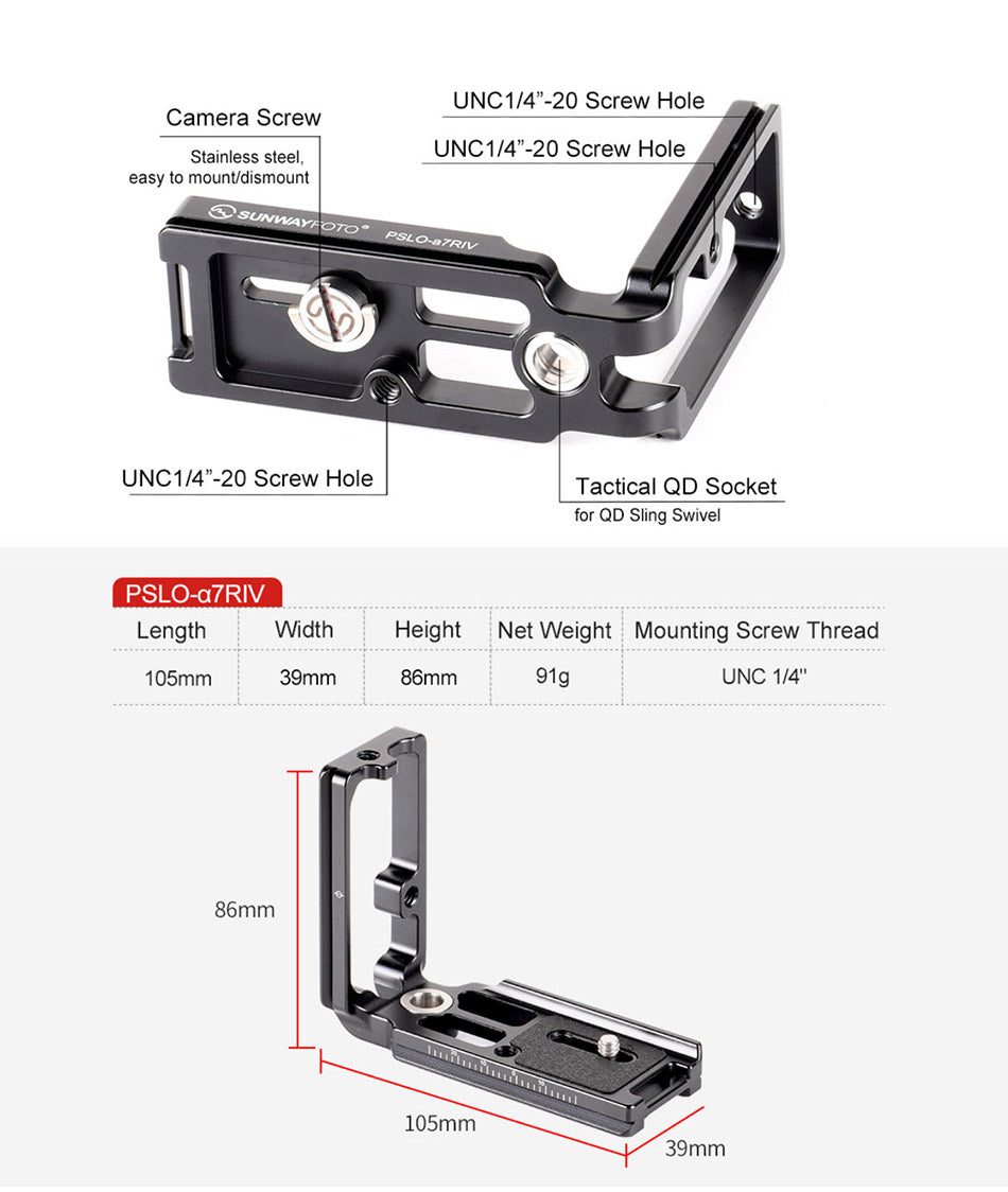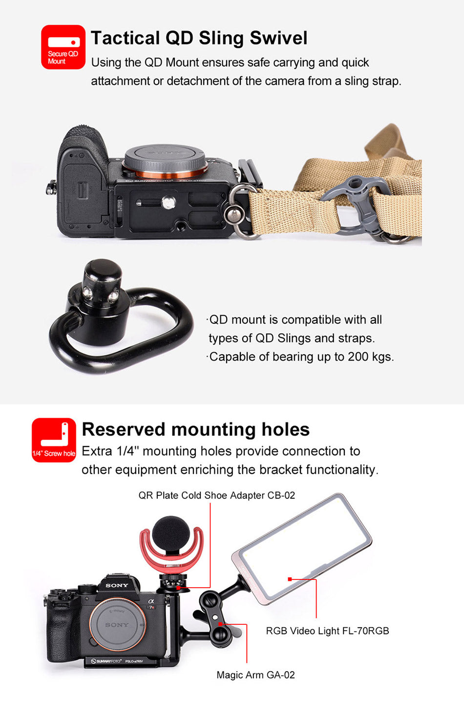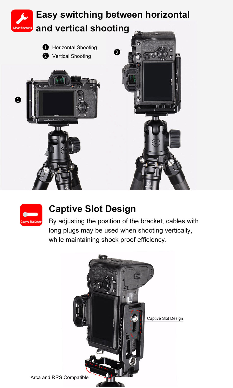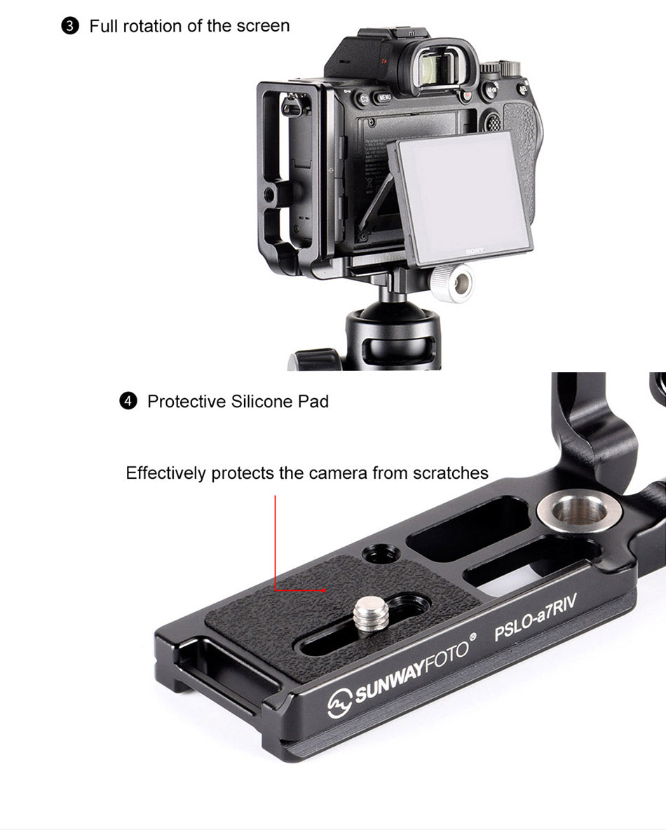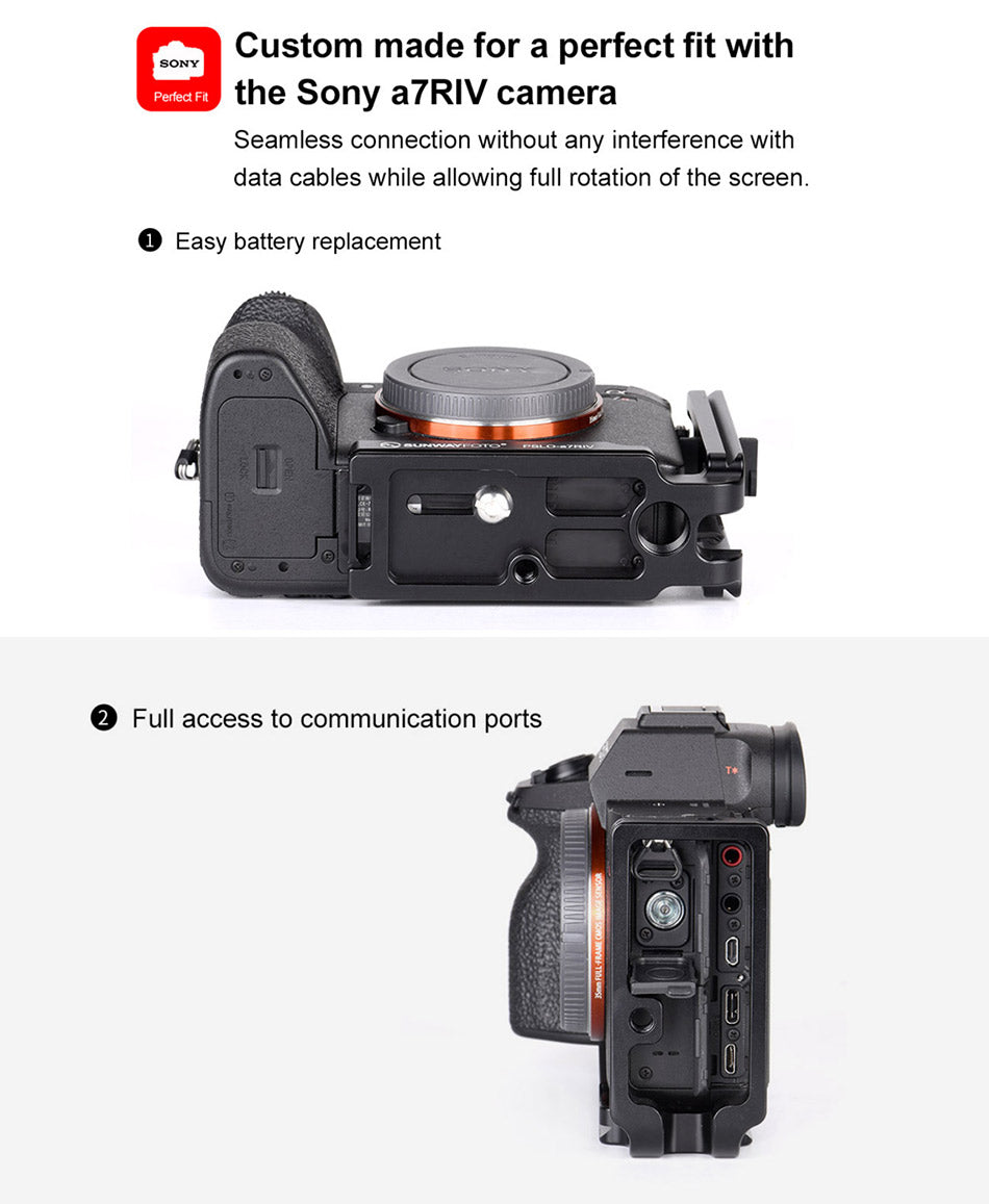 ✪All Sunwayfoto dedicated L-brackets are custom made for perfect fits with the cameras, seamless connection ensures there is no interference with data cables, screens or battery replacement.
