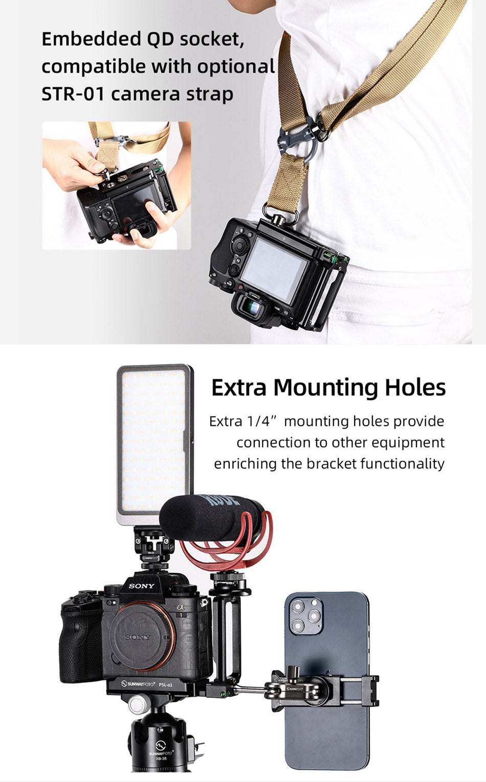 ✪L-shape QR Grip Custom made for a perfect fit with SONY a1 , seamless connection. Allow full rotation of the screen.