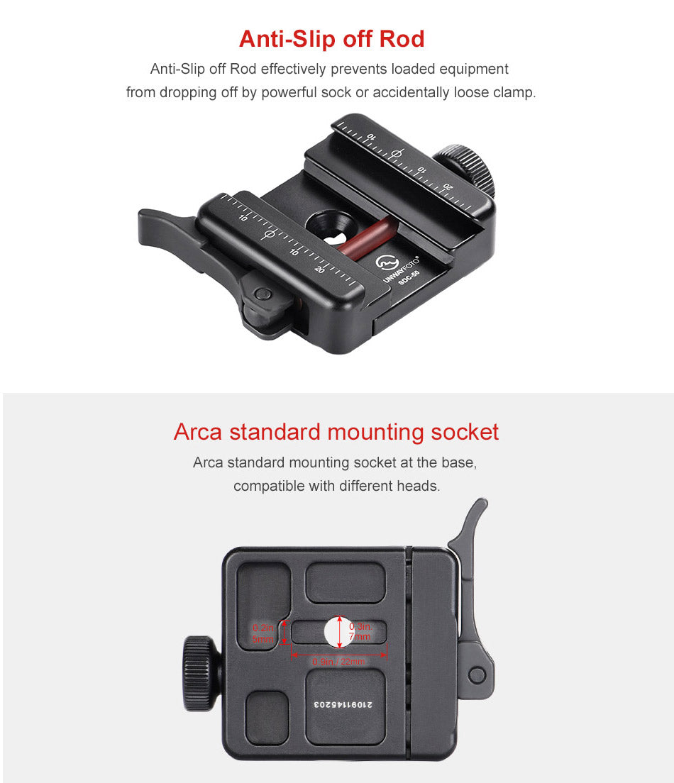 ✪Clamp width can be fine tuned to work with different Arca QR plates.