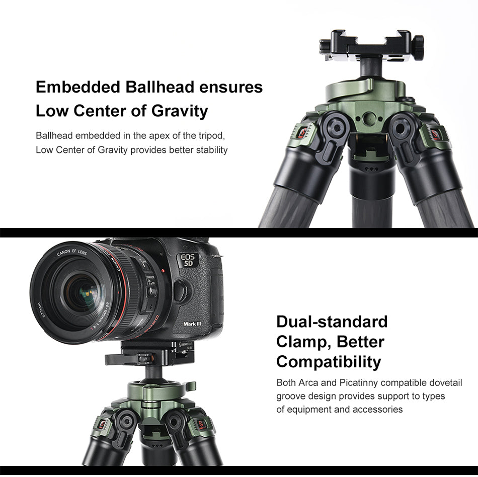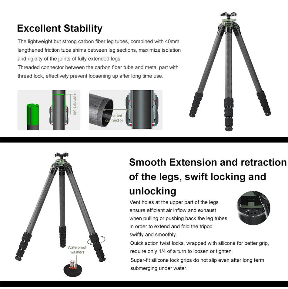 ✪Utilizing the SUNWAYFOTO tripod tube structure whichs is resistant to water and sand, ensuring this tripod kit is suitable to work under severe conditions outdoors.