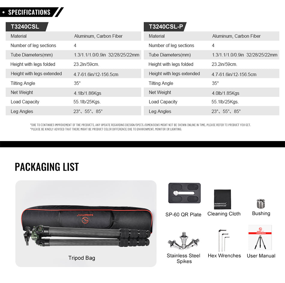 ✪T3240CSL tripod kit is one tripod ballhead combo specially designed for hunting and shooting.